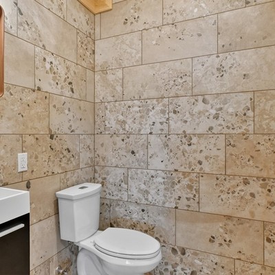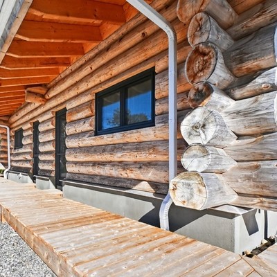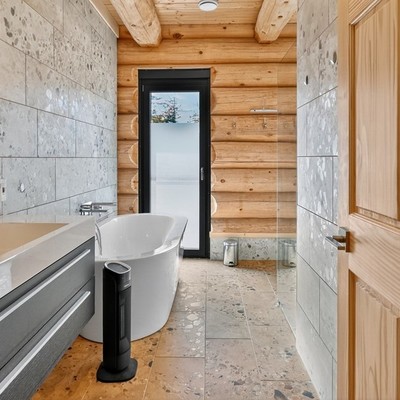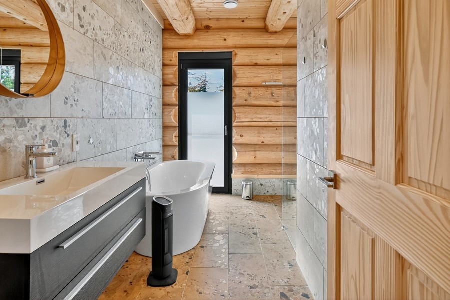 Badezimmer – Wellness in Naturstamm-Architektur