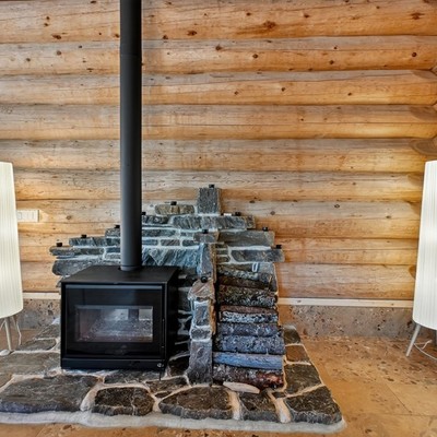 Hier steht auch der Kaminofen, der an kühlen Abenden ein flackerndes Lichtspiel an die Wände wirft ,perfekt, um mit Freunden bei einem Glas Rotwein Geschichten auszutauschen.